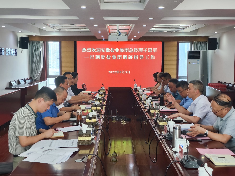 8月2日至5日,省鹽業集團黨委副書記、總經理、董事,省康養公司等三家公司黨委書記、董事長王思軍一行先后赴貴州茅臺集團、貴鹽集團、貴州高速集團、貴州省生態環境廳、海螺集團貴州公司以及中國水環境集團貴州南明河項目公司等單位調研考察。省鹽業集團黨委委員、副總經理王奇及部分業務板塊主要負責人陪同。