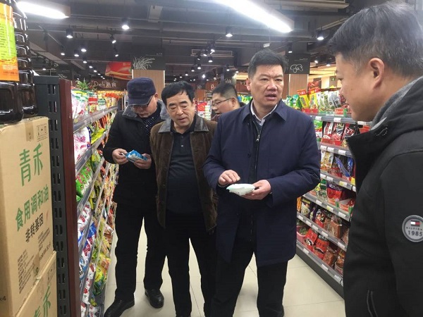 邱軍一行深入農貿市場、批發市場、連鎖商超察看食鹽市場占有情況、鹽品鋪貨情況?,F場查看了倉庫,了解商品庫存情況。
