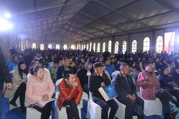 開盤當日,客戶車輛在引導員指引下魚貫而入??拷值纼膳耘牌饤l條長龍,活動帳篷內更是人頭攢動,座無虛席,場面十分火爆。本期產品繼續采用搖號方式予以加推,在限售、限價等政策影響下,六安市場像今天這種熱銷場面已不多見。