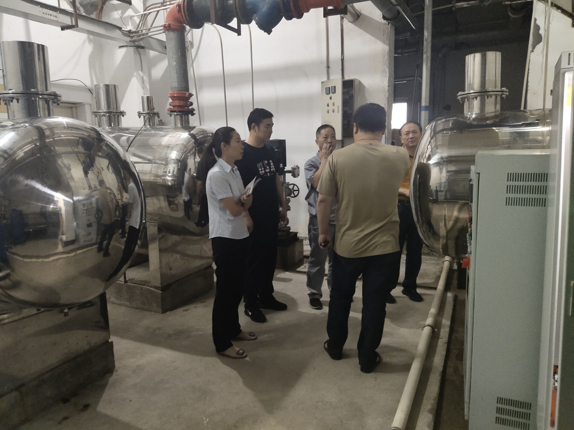 檢查組一行先后查看了泵房消防設備及樓頂保溫箱等消防設備,聽取了后勤公司和維保部門對設施設備的維修保養情況介紹;隨后對職工食堂設施設備、大廈內水循環系統、配電房設備以及監控室設施設備的運轉情況進行檢查;最后,檢查組對大廈外圍存在安全隱患區域進行了詳細地摸排、巡查。