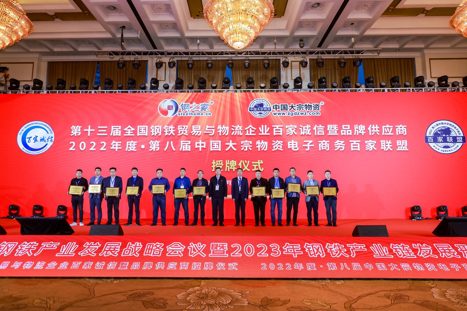 會議期間,鋼之家網站舉行了“第十三屆全國鋼鐵貿易與物流企業百家誠信暨品牌供應商”授牌儀式,安徽順朝公司經專家評審委員會的認可榮獲該稱號。