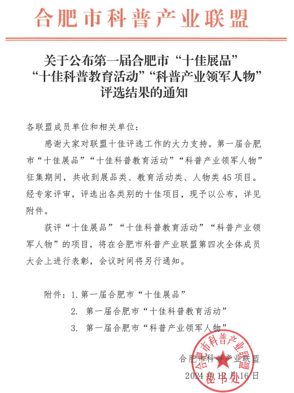 近日,由合肥市科普產業聯盟舉辦的第一屆合肥市“十佳展品”“十佳科普教育活動”“科普產業領軍人物”評選結果公布,合肥鹽業“鹽”學之旅——食鹽科普研學活動榮膺第一屆合肥市“十佳科普教育活動”。